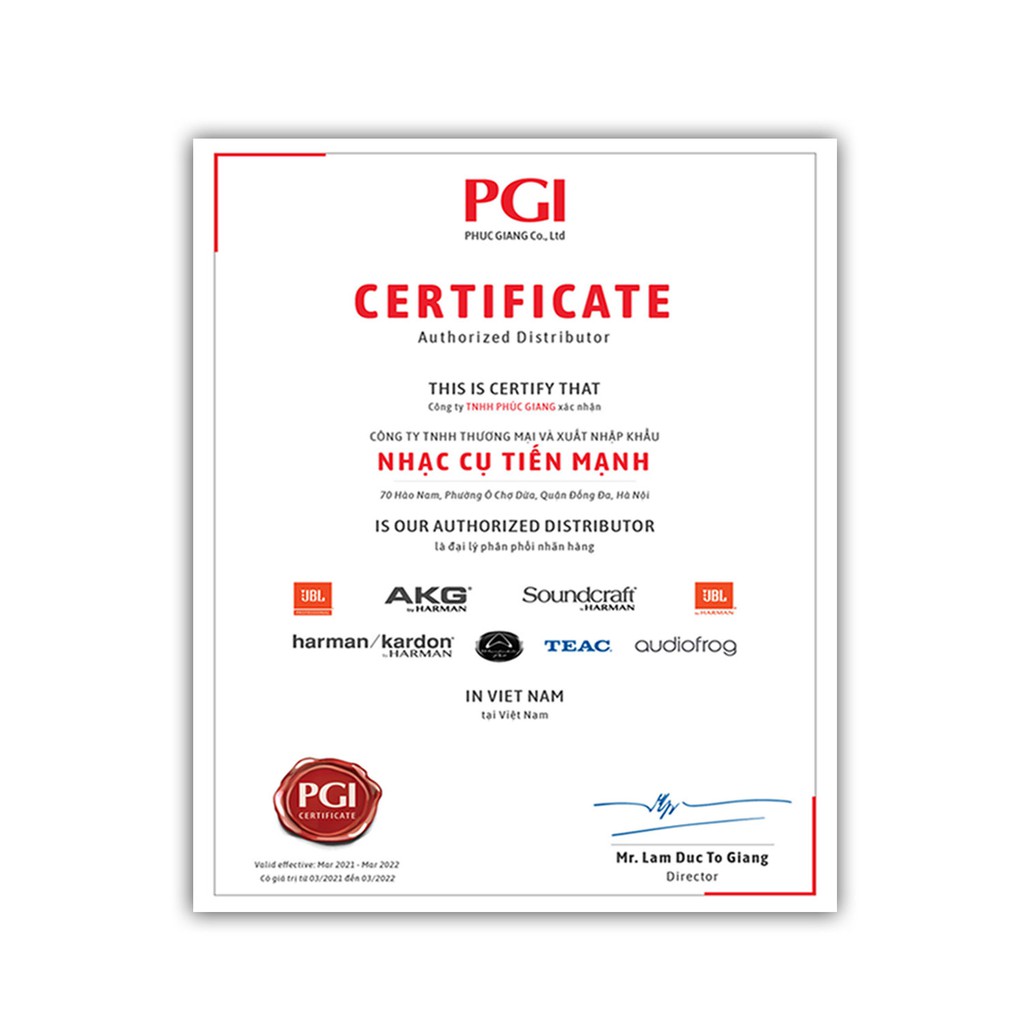 - Tiến Mạnh Music cam kết sản phẩm 100% chính hãng JBL, sai hoàn tiền gấp 10 lần.- Tiến Mạnh Music có đầy đủ hóa đơn, chứng từ, giấy chứng nhận phân phối hợp lệ cho sản phẩm thương hiệu JBL, và sẵn sàng cung cấp báo giá, hóa đơn, chứng từ nếu quý khách có nhu cầu phục vụ cho dự án lớn, công ty, trường học...
