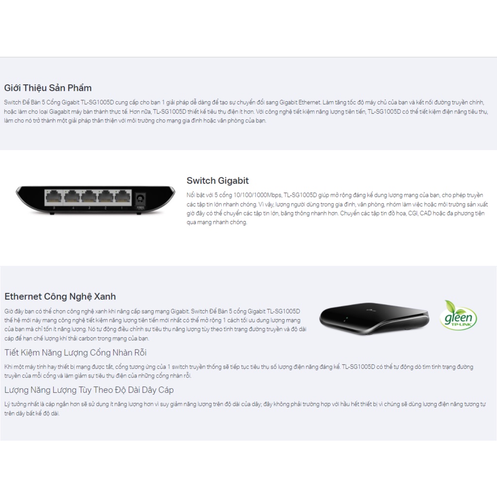 Giới thiệu [Chính Hãng] Bộ Chia Mạng TP-Link SG1005D Switch 5 Cổng Gigabit