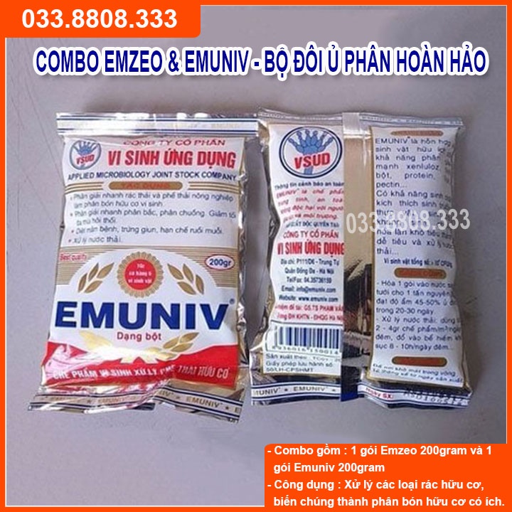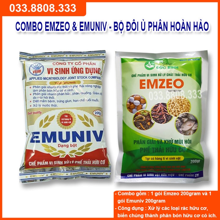 [Chính hãng]BỘ ĐÔI EMZEO & EMUNIV DÙNG Ủ RÁC THẢI HỮU CƠ VÀ KHỬ MÙI HÔI ( MỖI GÓI 200G)