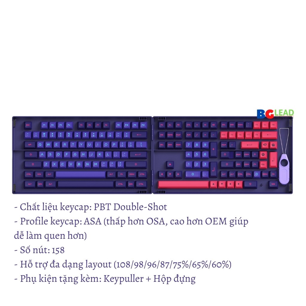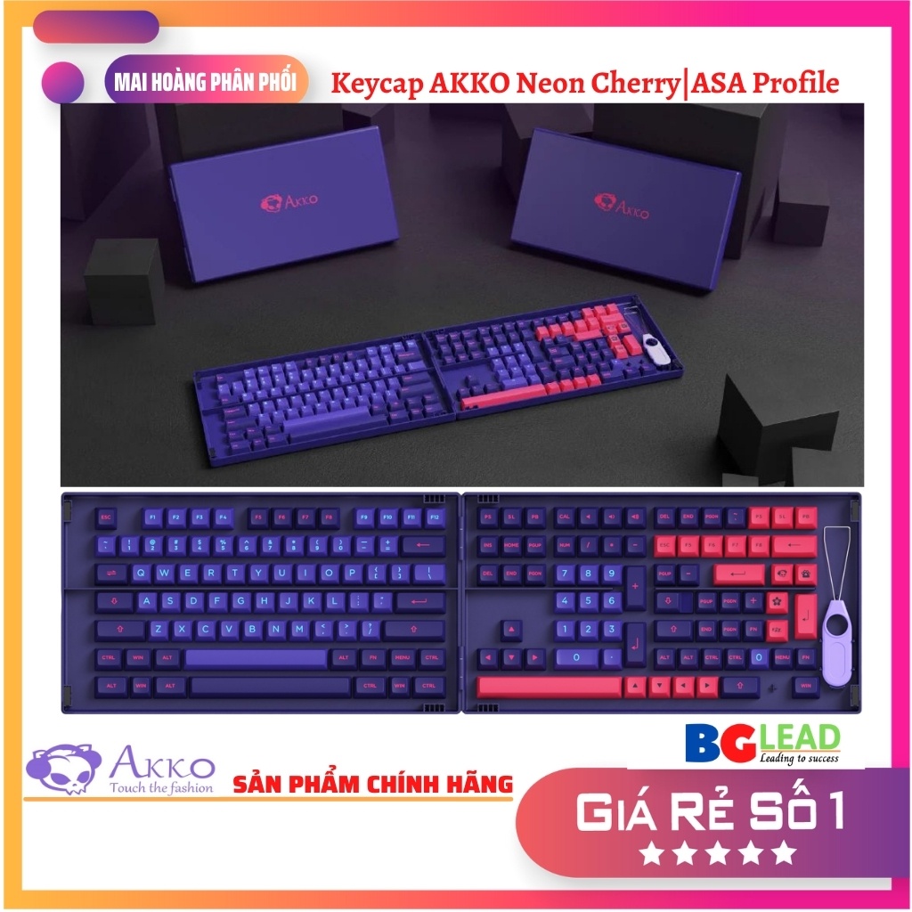 [Chính hãng] Bộ keycap cho bàn phím cơ Akko Neon Cherry Profile 157 nút|ASA Profile 158 nút - Mai Hoàng phân phối
