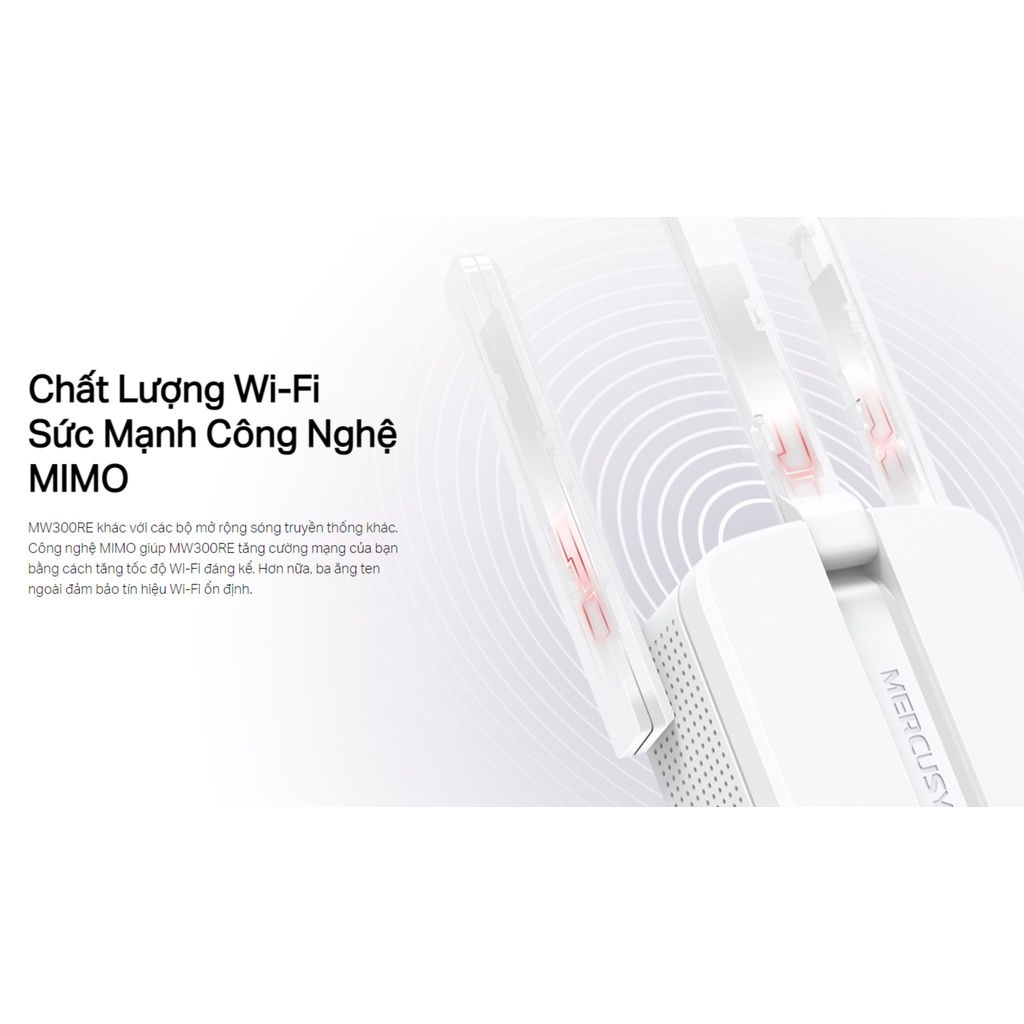 👉 Chất Lượng Wi-Fi, Sức Mạnh Công Nghệ MIMO: MW300RE khác với các bộ mở rộng sóng truyền thống khác. Công nghệ MIMO giúp MW300RE tăng cường mạng của bạn bằng cách tăng tốc độ Wi-Fi đáng kể. Hơn nữa, ba ăng ten ngoài đảm bảo tín hiệu Wi-Fi ổn định.