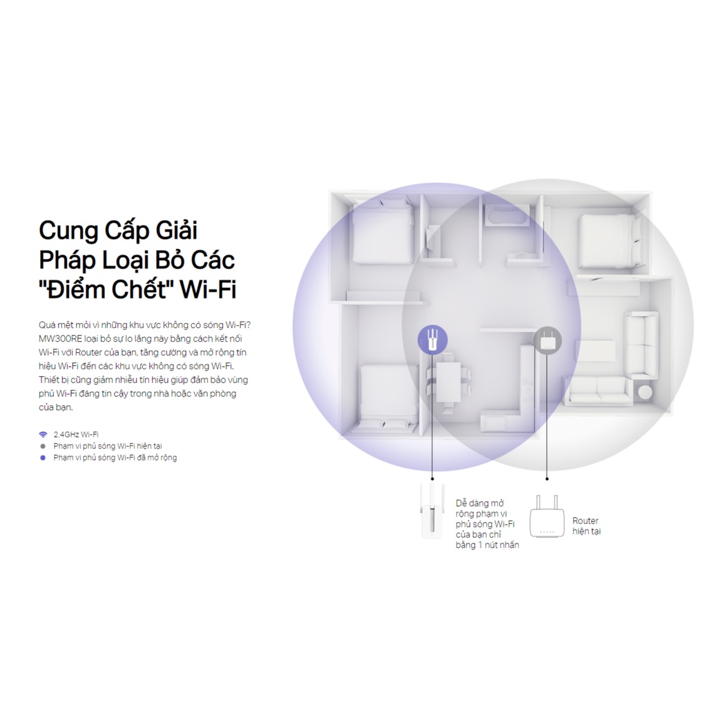 👉 Cung Cấp Giải Pháp Loại Bỏ Các "Điểm Chết" Wi-Fi: Quá mệt mỏi vì những khu vực không có sóng Wi-Fi? MW300RE loại bỏ sự lo lắng này bằng cách kết nối Wi-Fi với Router của bạn, tăng cường và mở rộng tín hiệu Wi-Fi đến các khu vực không có sóng Wi-Fi. Thiết bị cũng giảm nhiễu tín hiệu giúp đảm bảo vùng phủ Wi-Fi đáng tin cậy trong nhà hoặc văn phòng của bạn.