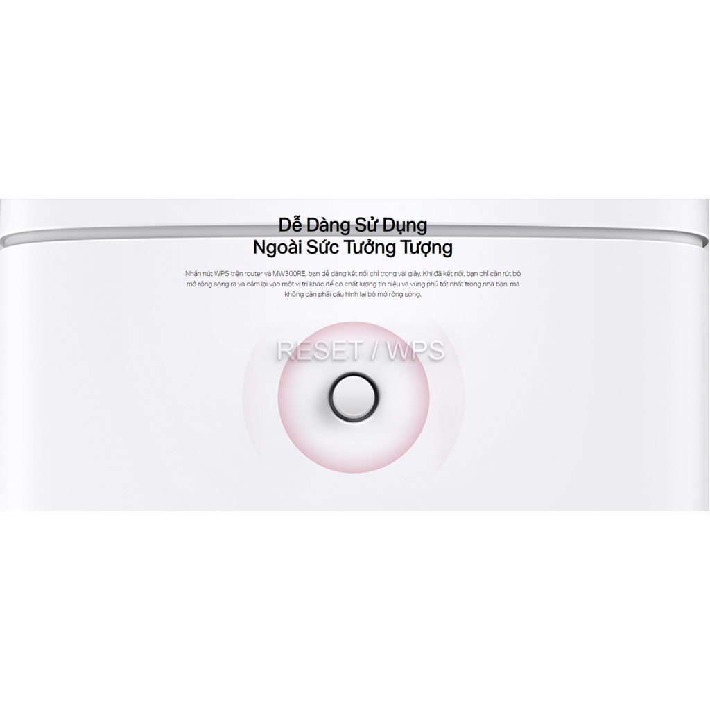 👉 Dễ Dàng Sử Dụng - Ngoài Sức Tưởng Tượng: Nhấn nút WPS trên router và MW300RE, bạn dễ dàng kết nối chỉ trong vài giây. Khi đã kết nối, bạn chỉ cần rút bộ mở rộng sóng ra và cắm lại vào một vị trí khác để có chất lượng tín hiệu và vùng phủ tốt nhất trong nhà bạn, mà không cần phải cấu hình lại bộ mở rộng sóng.