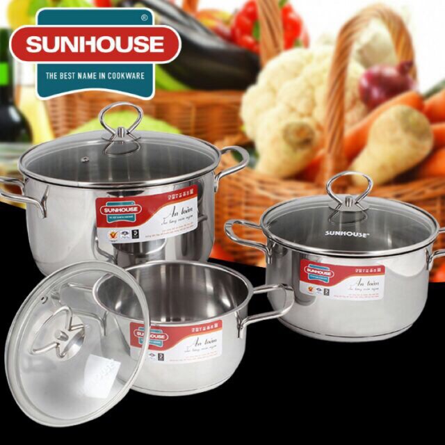 Nhà cửa & Đời sống > Dụng cụ nhà bếp > Nồi || [Chính Hãng] Bộ Nồi 3 Đáy Sunhouse Siêu Dày SH888Còn hàng