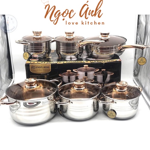 Nhà cửa & Đời sống > Dụng cụ nhà bếp > Nồi || [Chính hãng] Bộ nồi Đức 12 chi tiết ENGELBERG CÔNG NGHỆ ĐỨC ,6 món, 5 đáy, chống dính theo công nghệ ĐứcCòn hàng