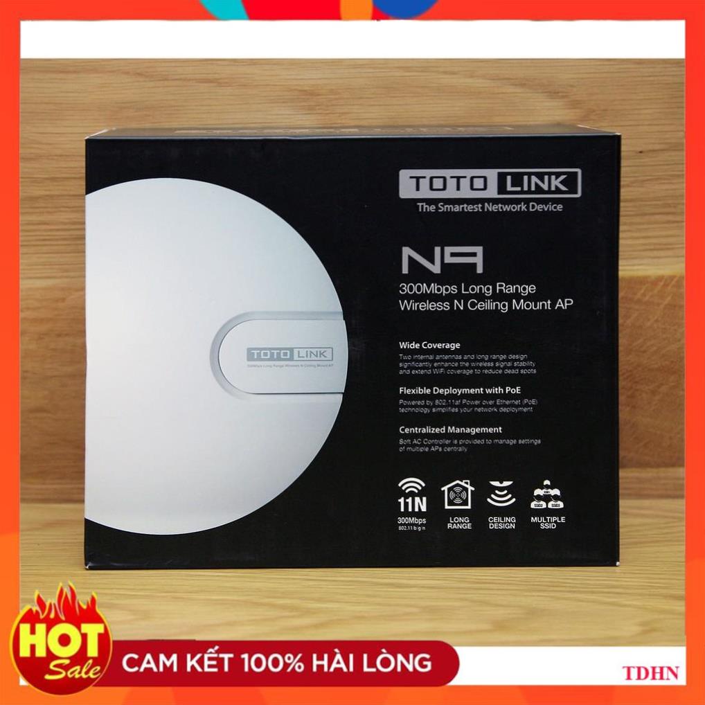 TotoLink N9 - Điểm Truy Cập Wifi Chuẩn N Tốc Độ 300Mbps Không Adapter là bộ tiếp sóng wifi CEILING-MOUNT Access Point chuẩn N tốc độ lên tới 300 Mbps dạng không Adapter phủ sóng cực rộng, anten ngầm nhỏ gọn với thiết kế tinh tế cho không gian của bạn.