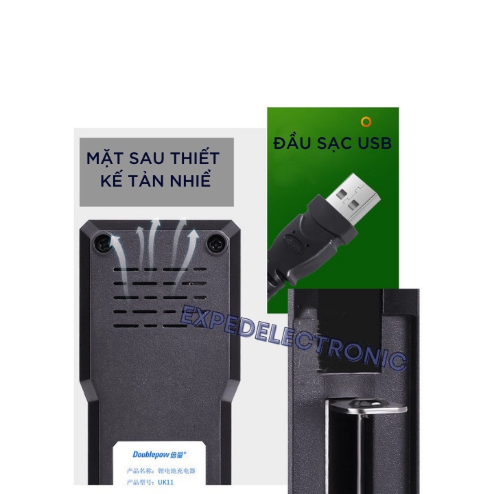 Cameras & Flycam > Phụ kiện máy ảnh > Bộ sạc pin || [Chính hãng] Bộ sạc pin thông minh tự ngắt 1 khe cắm USB cho Li-ion 18650 chính hãng DoublepowCòn hàng