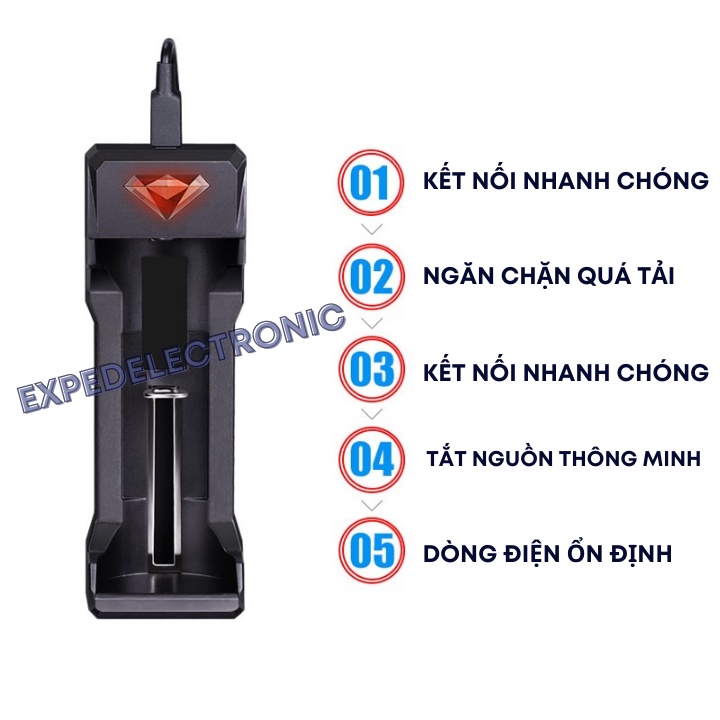 Có thể sử dụng cho các loại pin sạc: 18650, 18670, 18500, 14500, 16340, 10440, 123A
