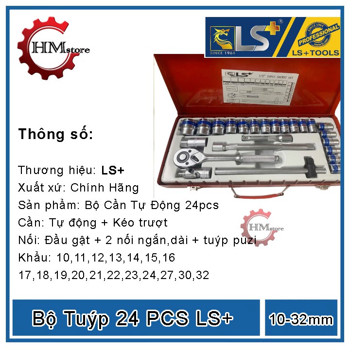 [Chính hãng] Bộ tuýp cần cao cấp USA 24pcs LS+ Bộ tuýp 24 chi tiết đa năng- Dụng cụ LS+ một thương hiệu tuy mới nhưng khá quên thuộc trong thị trường dụng cụ cầm tay.