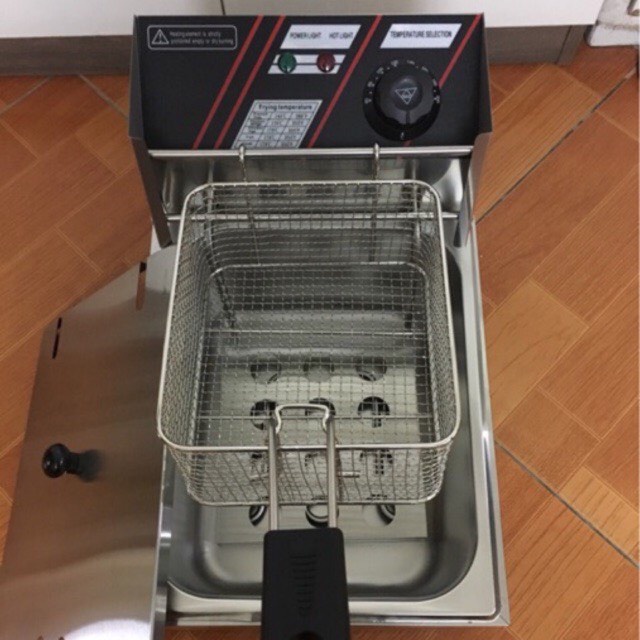 - Thùng đựng dầu dung tích lớn 6 lít, rổ chiên dạng lưới với tay cầm chắc chắn được bọc thêm lớp nhựa bên ngoài đảm bảo an toàn.