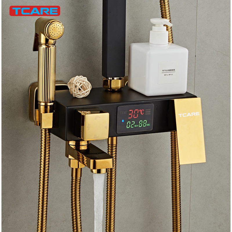 Giới thiệu [HÀNG CAO CẤP]Bộ Sen cây nóng lạnh Đồng mạ tĩnh điện Kèm xịt vệ sinh + Khay để đồ + CÓ MÀN HÌNH LED Hiển thị nhiệt độ