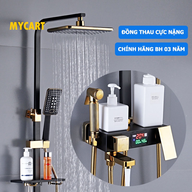 [HÀNG CAO CẤP]Bộ Sen cây nóng lạnh Đồng mạ tĩnh điện Kèm xịt vệ sinh + Khay để đồ + CÓ MÀN HÌNH LED Hiển thị nhiệt độ