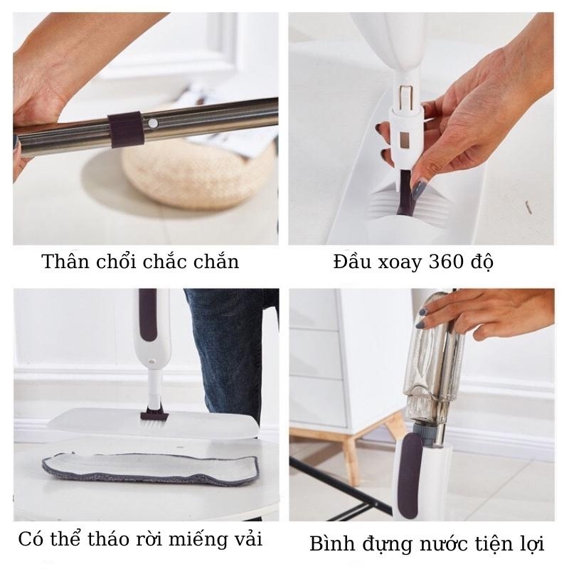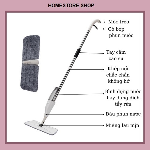 Cây lau nhà phun sương thông minh xoay 360 độ cán dài 125cm siêu sạchCây lau nhà phun sương có thiết kế vừa lau sàn vừa phun nước, không cần châm nước nhiều lần khi lau.