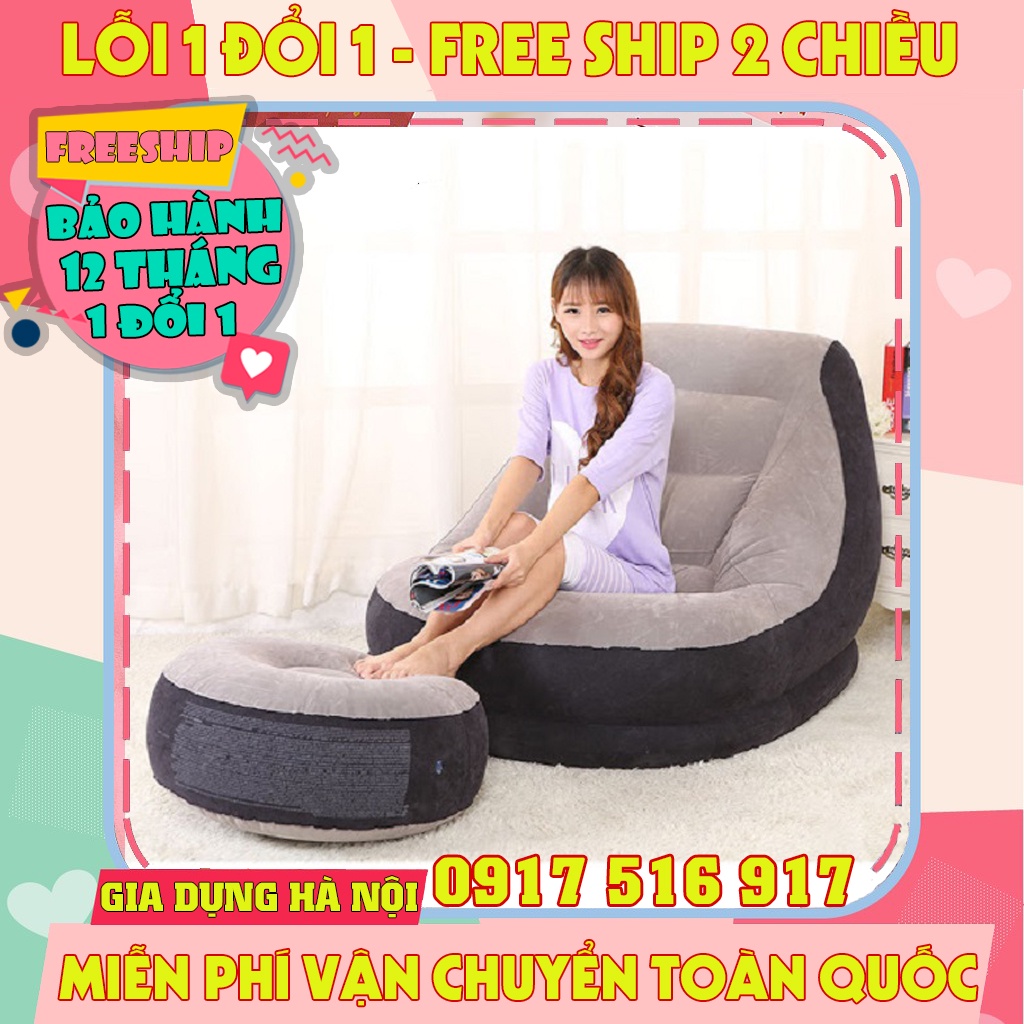 Giới thiệu [Hàng Cao Cấp] Ghế hơi tựa lưng bọc nhung tặng kèm đệm hơi lót chân