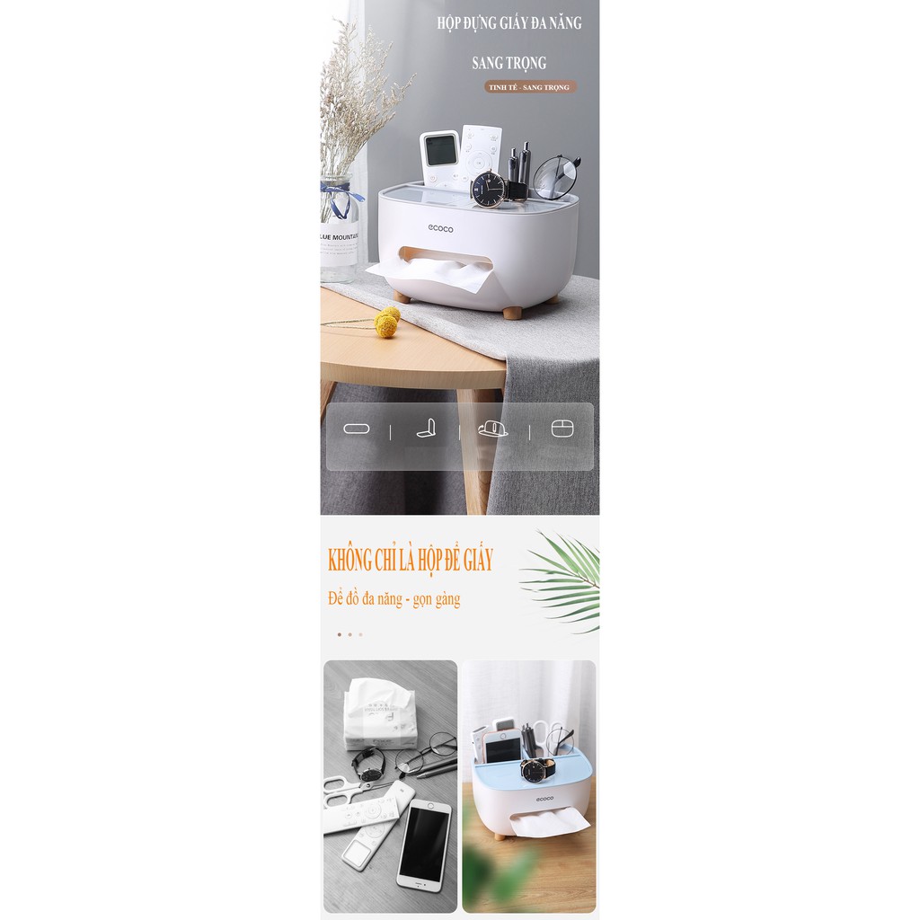 Nhà cửa & Đời sống > Sắp xếp nhà cửa > Hộp khăn giấy || [Hàng cao cấp] Hộp đựng khăn giấy để bàn đa năng Ecoco - E2009Còn hàng