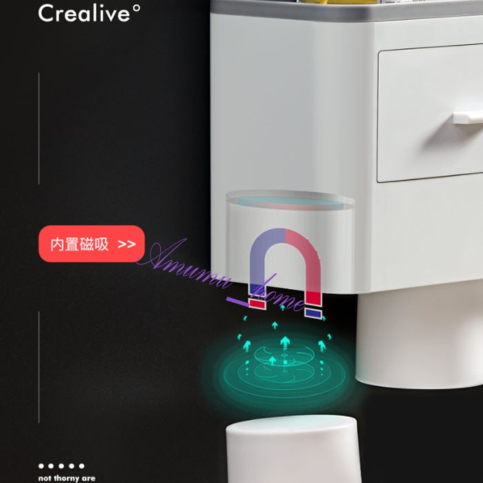 - Sản phẩm gồm: 1 Kệ nhà tắm tích hợp chức năng lấy kem tự động + Cốc hút từ tính + miếng dán tường