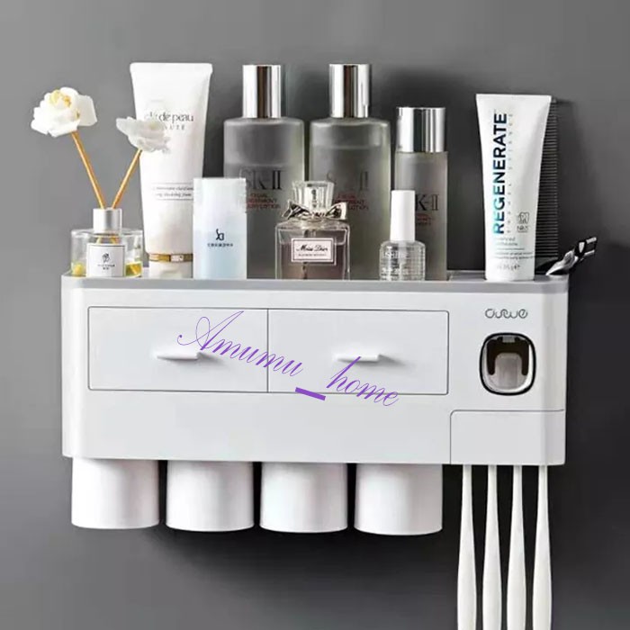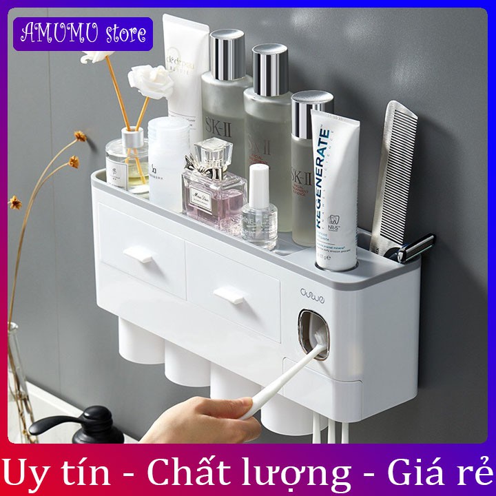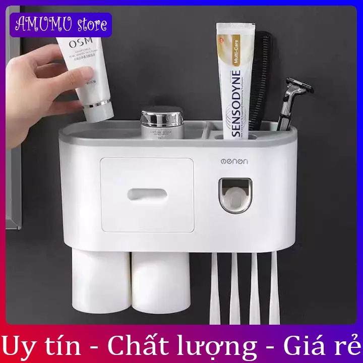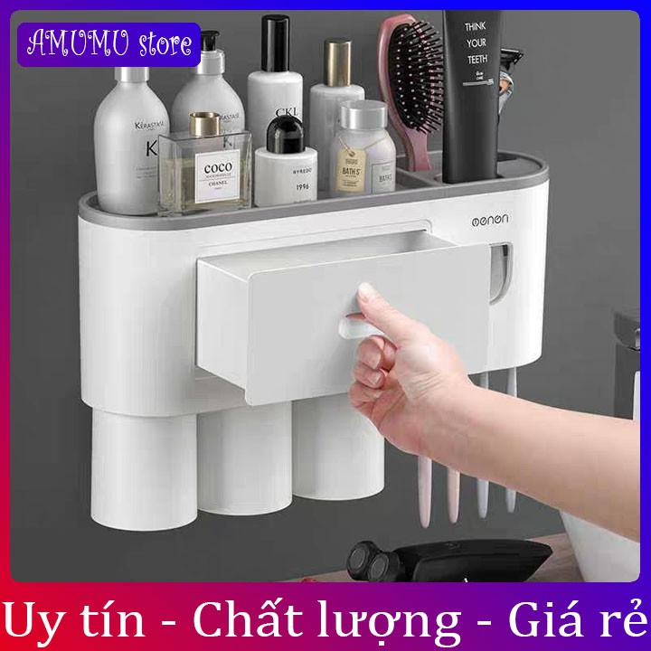 [Hàng cao cấp]KỆ ĐỂ ĐỒ-NHẢ KEM ĐÁNH RĂNG KÈM 2 CỐC, 3 CỐC, 4 CỐC LỰC HÚT NAM CHÂM NHẢ KEM TỰ ĐỘNG BẢO HÀNH 1 ĐỔI 1