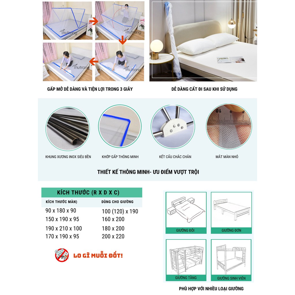 Nhà cửa & Đời sống > Chăn ga gối nệm > Mùng/ Màn chống muỗi || [Hàng Cao Cấp] Màn chống muỗi gấp gọn thông minh Thu Trang. Màn tự bung đỉnh vuông. Màn chụp (BH 6 tháng)Còn hàng