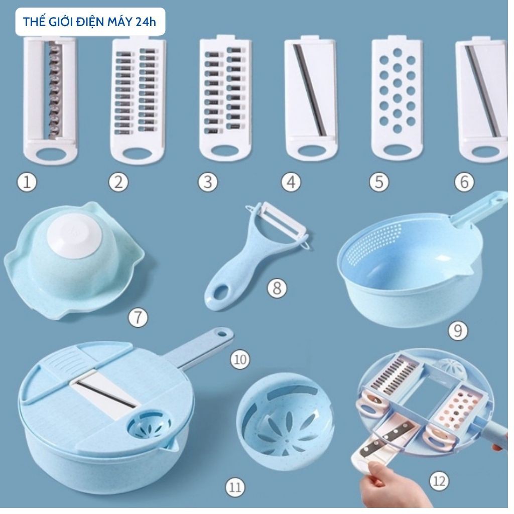 ✅11 chức năng: Thau, rổ, nghiền gừng tỏi, lược trứng, thái lát, bào sợi to nhỏ, bào khoanh.