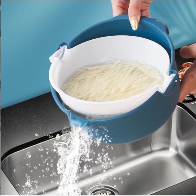 ✅Rổ thái rau củ đa năng với thiết kế xoay lồng 02 lớp rổ độc đáo giúp việc cắt thái và rửa rau củ, hoa quả trở nên dễ dàng hơn.