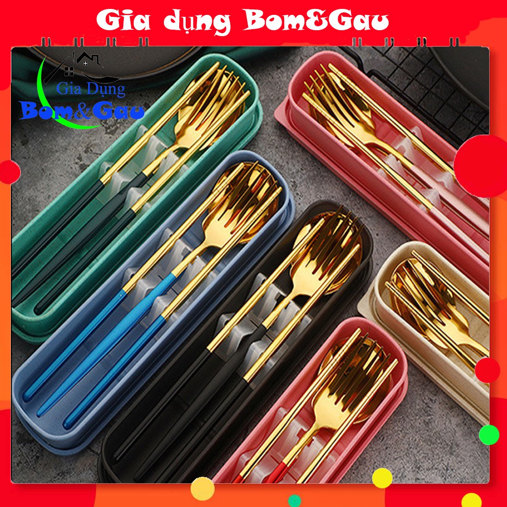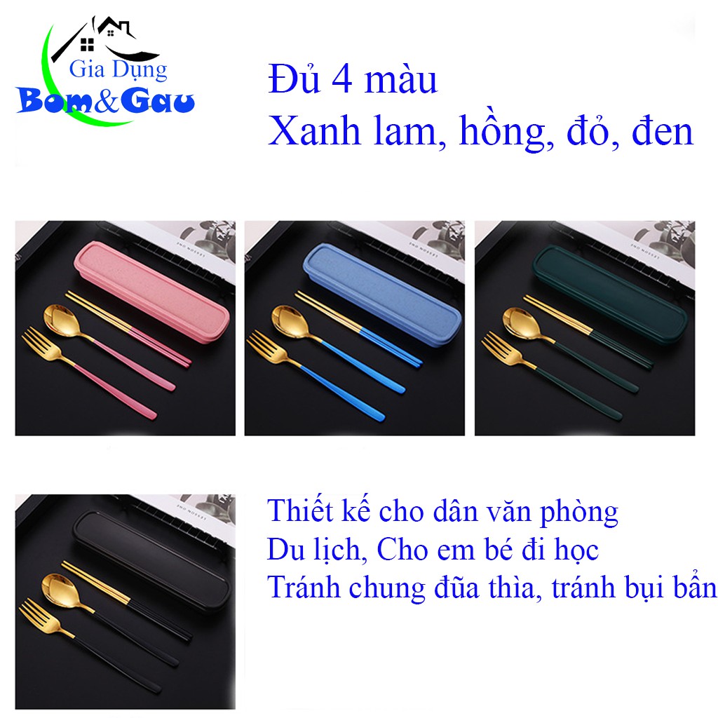 [HÀNG CAO CẤP]Set Dụng Cụ Ăn 3 Món Đũa Thìa Nĩa Cá Nhân Kèm Hộp Dựng Bằng Thép Không Gỉ 304 Phủ Bóng Mạ Vàng Bạc Cao Cấp