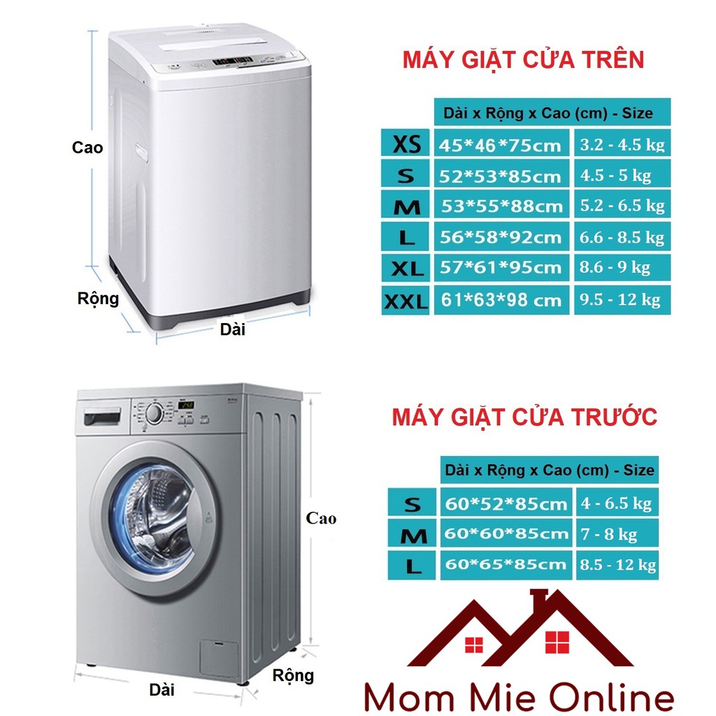 TẤM PHỦ MÁY GIẶT 8 - 12KG - BỌC MÁY GIẶT LOẠI LỚN CHỐNG NẮNG, CHỐNG NƯỚC - E001Thông tin về sản phẩm dưới đây thuộc sở hữu của shop Mom Mie, mô tả đúng theo chất lượng sản phẩm của shop. Vui lòng không sao chép.