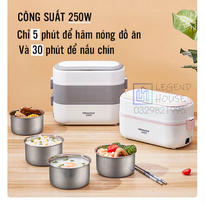 Hàng Cao CấpHộp Cơm Cắm Điện MINYSTYLECắm Điện 2 Tầng,4 Bát Inox,Giữ Nhiệt,Hâm Nóng,Nấu Chín Thức ĂnBH 12 Tháng