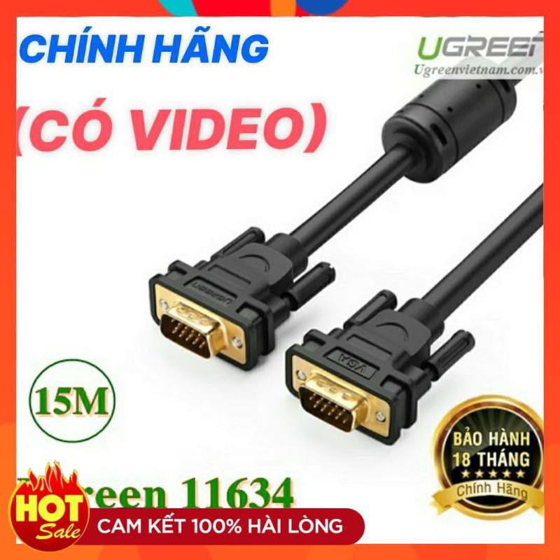 Cáp VGA 15M Ugreen 11634 kết nối máy tính PC Laptop máy chiếu-cáp 2 đầu VGA đực xịn chống nhiễu tốt nhất