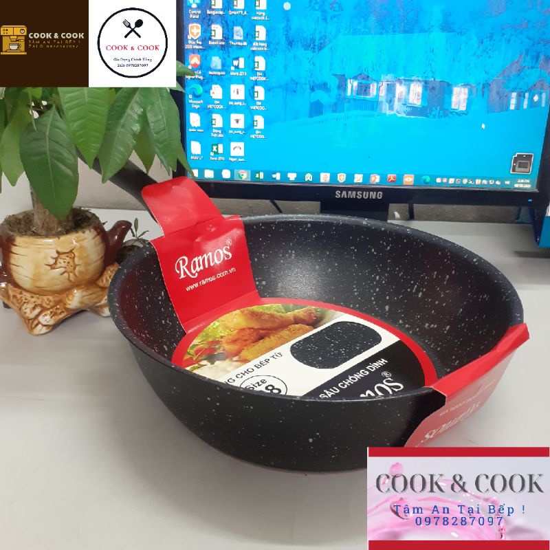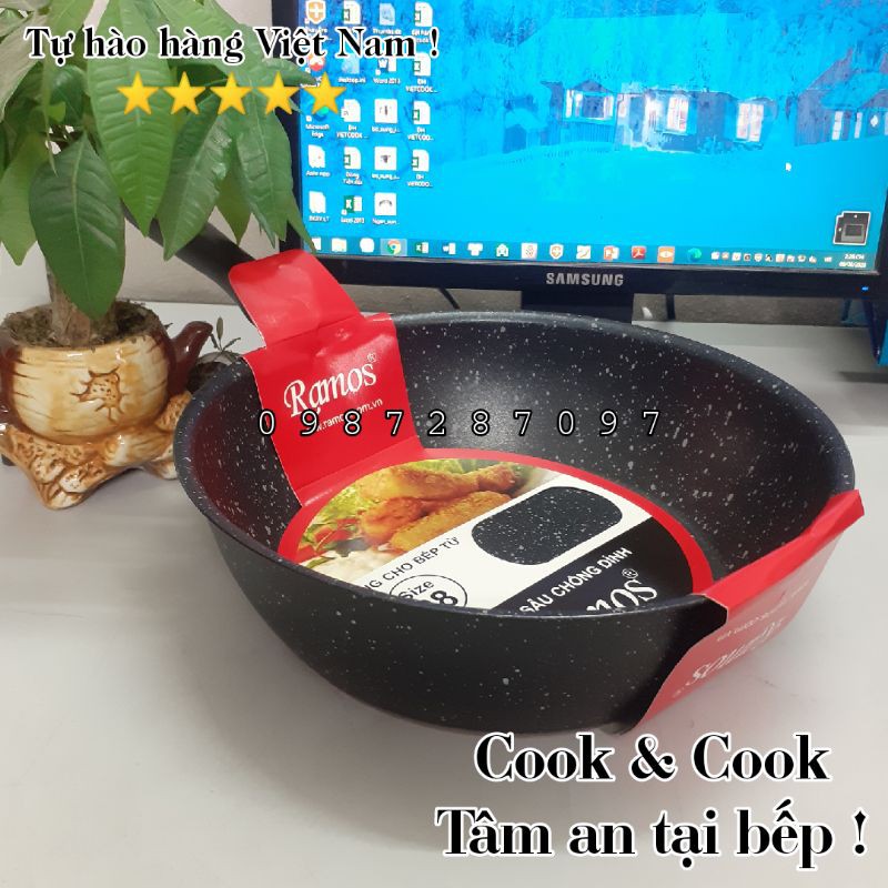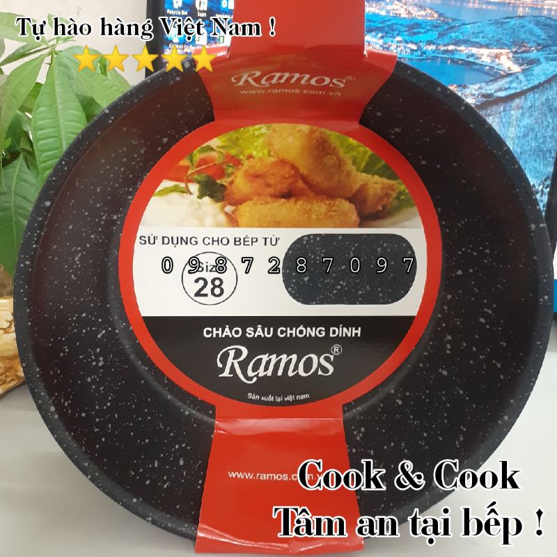 Nhà cửa & Đời sống > Dụng cụ nhà bếp > Chảo || [Chính Hãng] Chảo vân đá chống dính sâu lòng đáy từ Ramos sử dụng trên bếp từCòn hàng