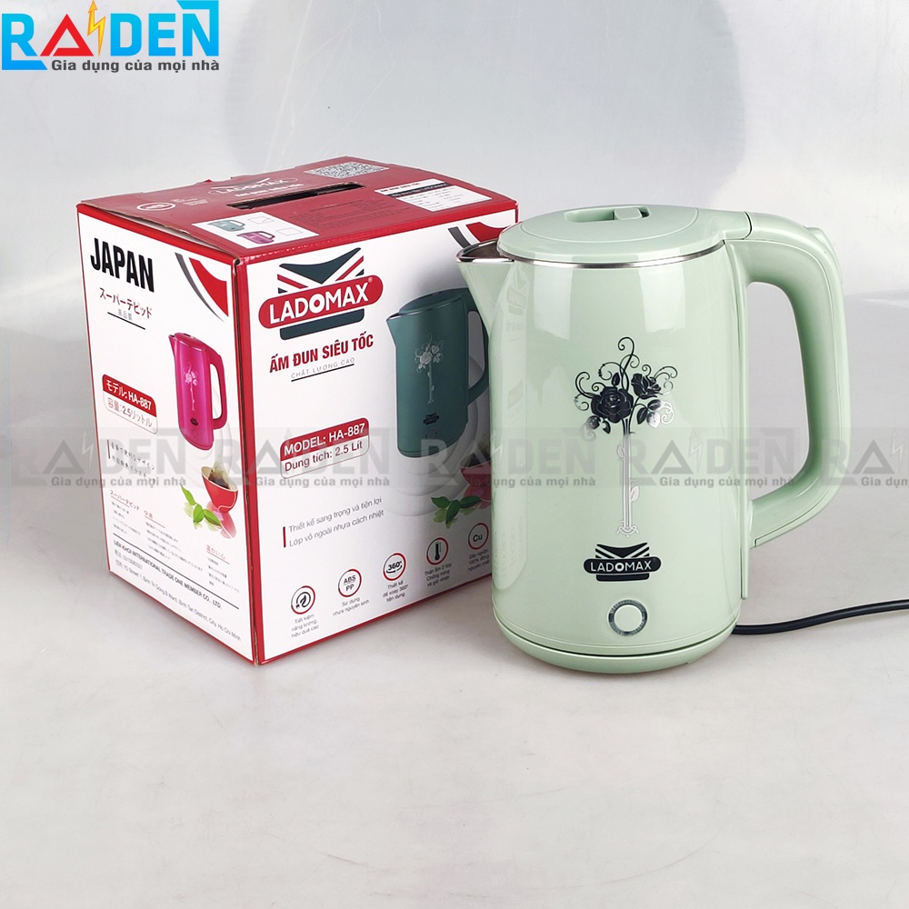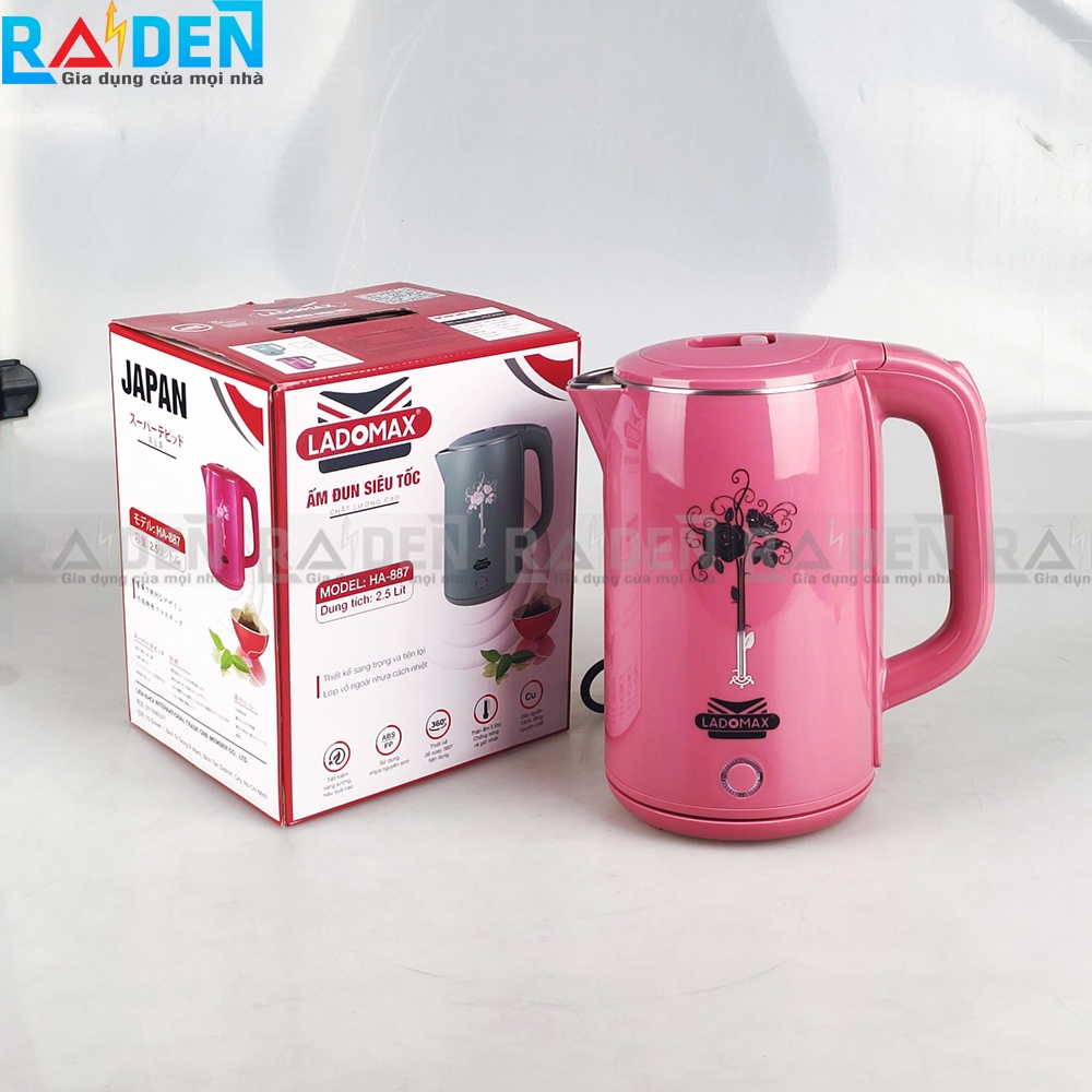 Thiết Bị Điện Gia Dụng > Đồ gia dụng nhà bếp > Ấm đun siêu tốc || [HÀNG CHÍNH HÃNG] Ấm đun nước 2.5L Ladomax HA-887 thiết kế 2 lớp với lòng nguyên khối, công suất lớn nấu nước siêu tốcCòn hàng