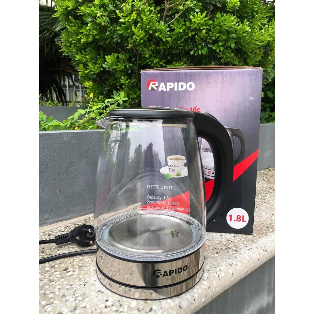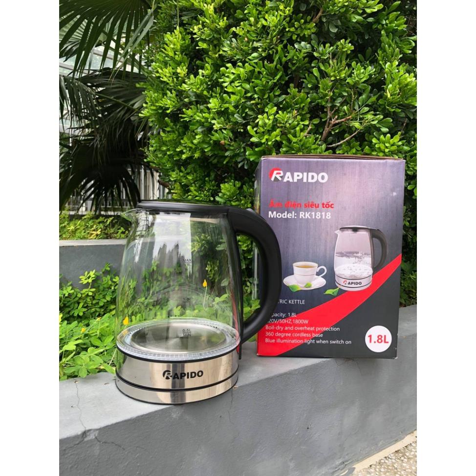 [HÀNG CHÍNH HÃNG] ẤM SIÊU TỐC, BÌNH ĐUN SIÊU TỐC THỦY TINH RAPIDO RK1818 1,8 LÍT