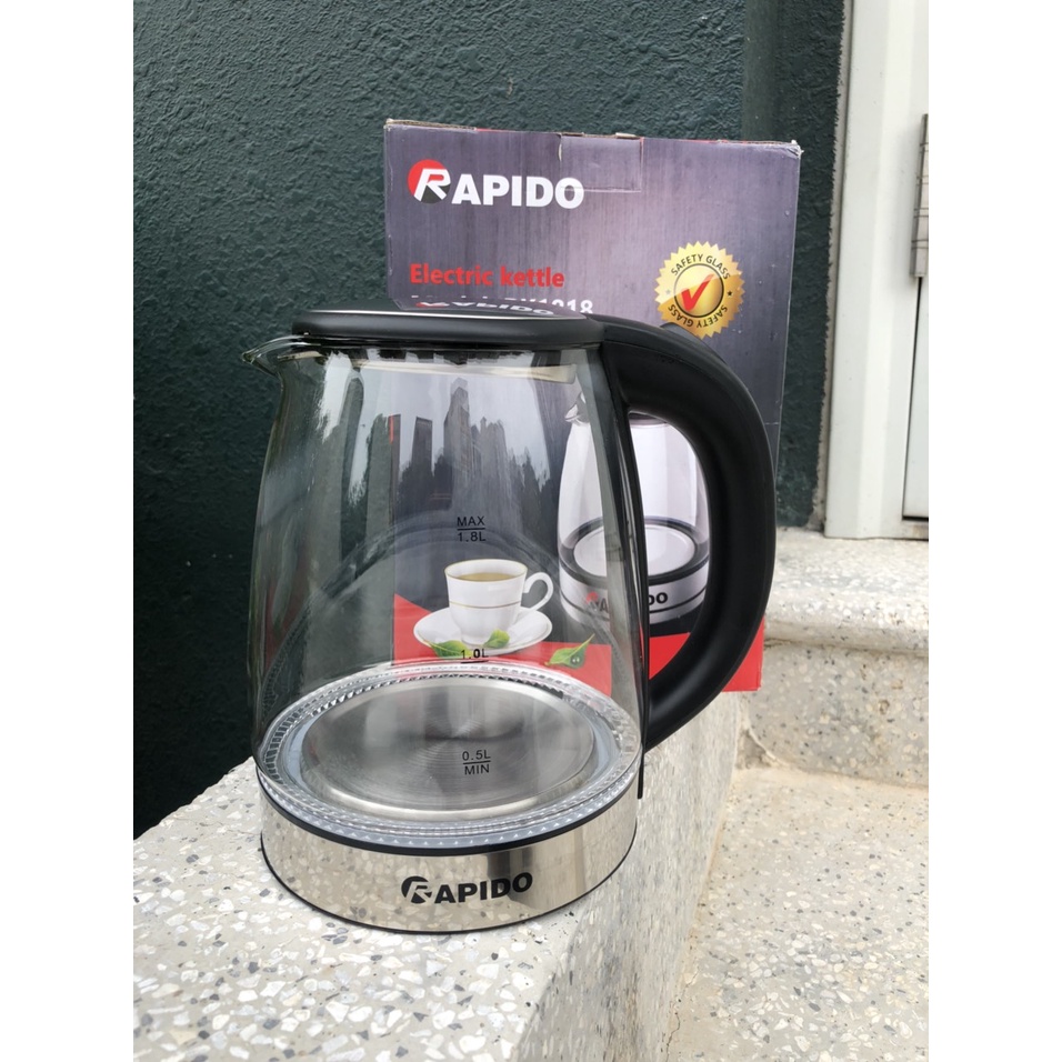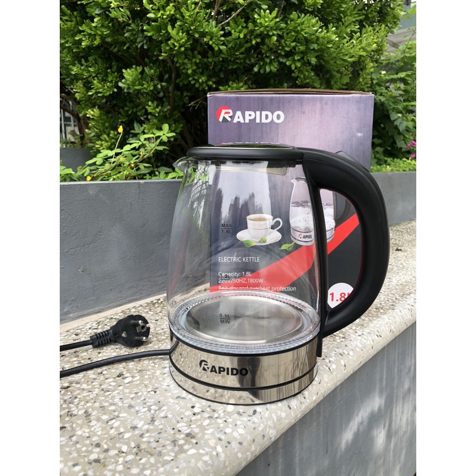 [HÀNG CHÍNH HÃNG] ẤM SIÊU TỐC, BÌNH ĐUN SIÊU TỐC THỦY TINH RAPIDO RK1818 1,8 LÍT