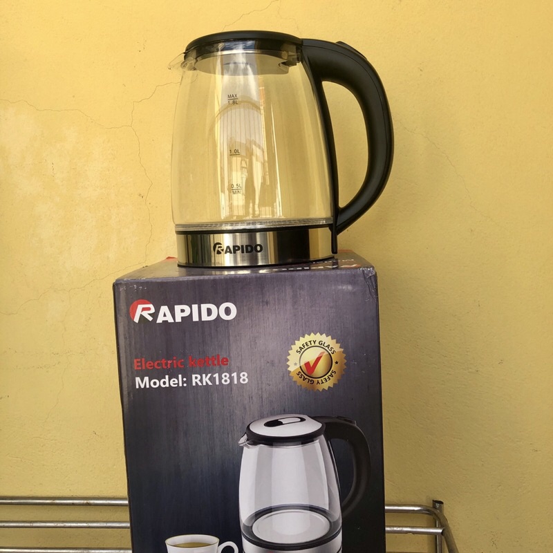 [HÀNG CHÍNH HÃNG] ẤM SIÊU TỐC, BÌNH ĐUN SIÊU TỐC THỦY TINH RAPIDO RK1818 1,8 LÍTẤm siêu tốc Rapido RK1818 có thân được làm bằng chất liệu thủy tinh cao cấp chịu nhiệt và chịu va đập cao, không chứa thành phần độc hại, đảm bảo an toàn cho sức khỏe. Sản phẩm có thể xoay 360 độ nhờ vào cấu tạo đế tiếp điện đặc biệt. Bạn có thể nhấc và đặt bình dễ dàng ở mọi góc, mang đến sự thuận tiện khi sử dụng.