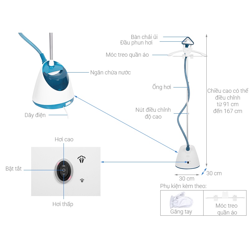 * Đặc điểm nổi bật:- Bàn ủi với thiết kế thẳng đứng, giúp bạn ủi dễ dàng hơn