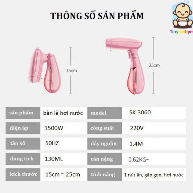 Mô tả sản phẩm bàn là hơi nước cầm tay gấp gọn, bàn là Sokany đa năng tiện lợi- Bàn là hồng gấp gọn, bàn là đa năng xinh siêu xịn dùng là mê
