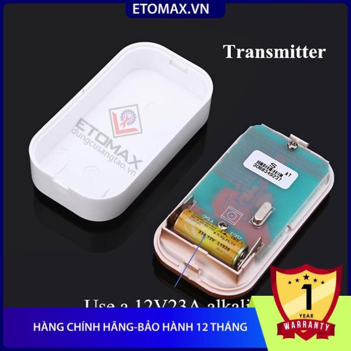 – Bộ sản phẩm bao gồm 1 chuông và 1 nút bấm (Chuông đơn) + 1 pin 12v