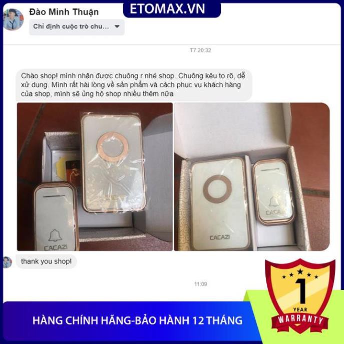 [Hàng chính hãng-Bảo hành 12 tháng] Chuông cửa không dây CACAZI V2