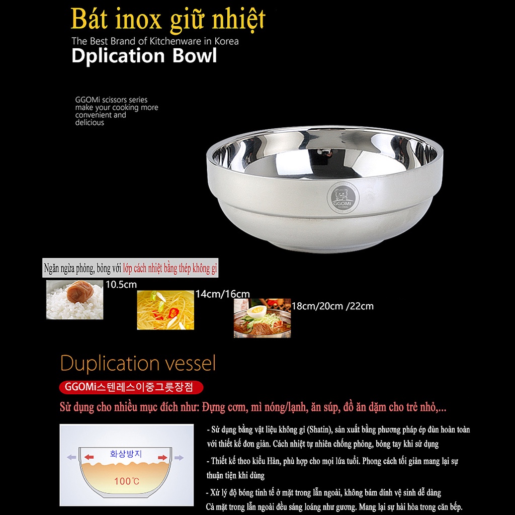 ✨Bát inox giữa nhiệt hút chân không GGOMi Hàn Quốc giúp ngăn ngừa phỏng, bỏng với lớp cách nhiệt bằng thép không gỉ có nhiều kích cỡ: 10cm, 12cm, 14cm, 18cm, 20cm, 22cm, ...