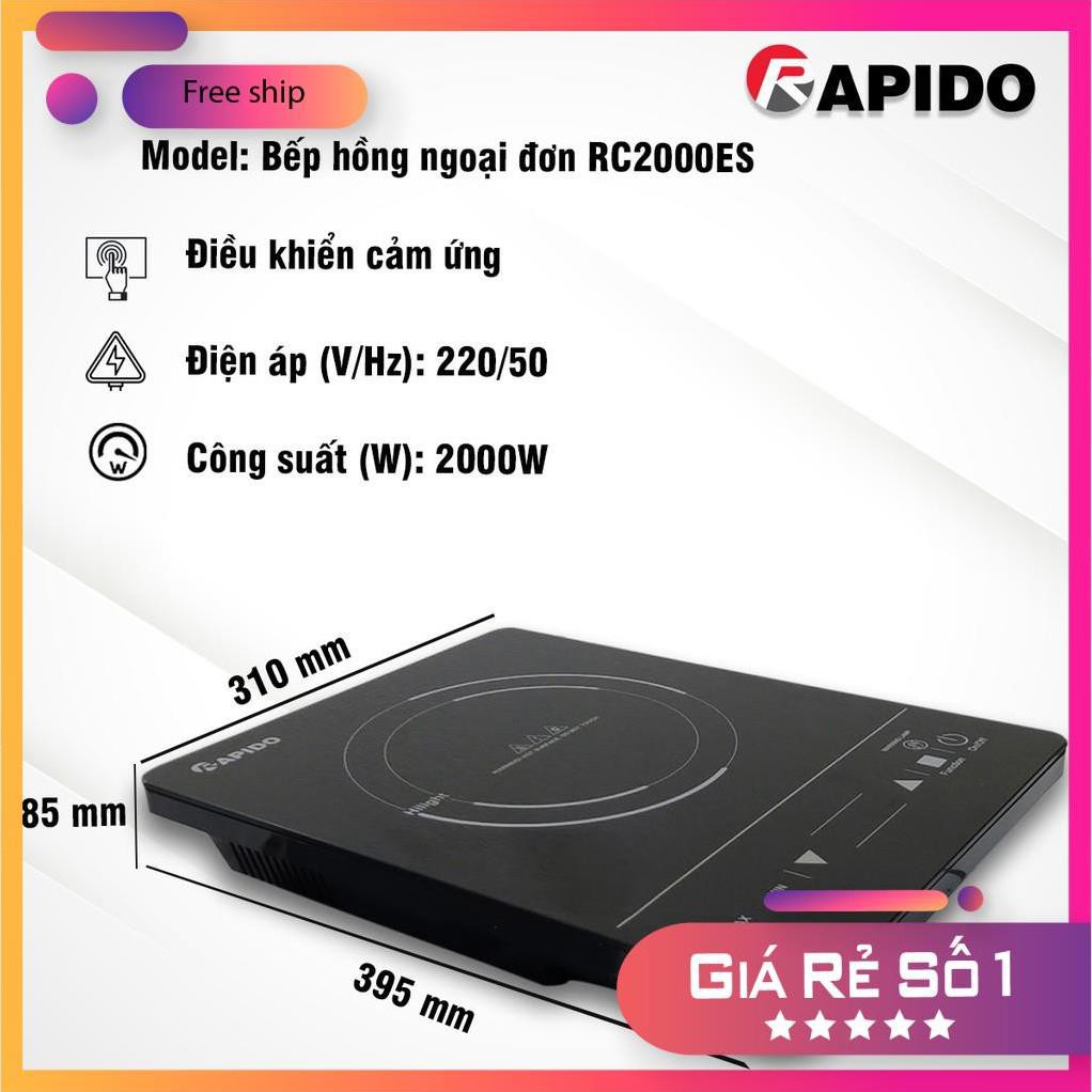 Giới thiệu HÀNG CHÍNH HÃNG - Bếp hồng ngoại đơn Rapido 2000W - RC2000ES Công Suất Lớn, Điều Khiển Cảm Ứng