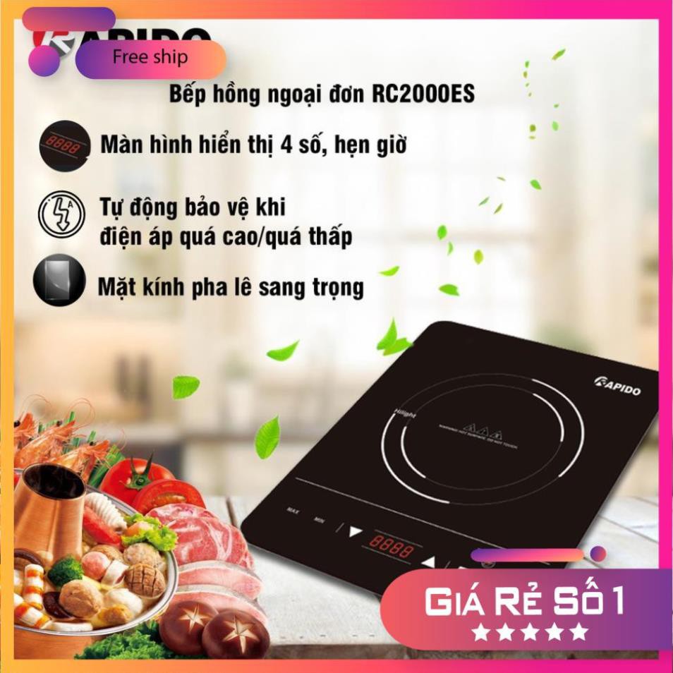 HÀNG CHÍNH HÃNG - Bếp hồng ngoại đơn Rapido 2000W - RC2000ES Công Suất Lớn, Điều Khiển Cảm Ứng