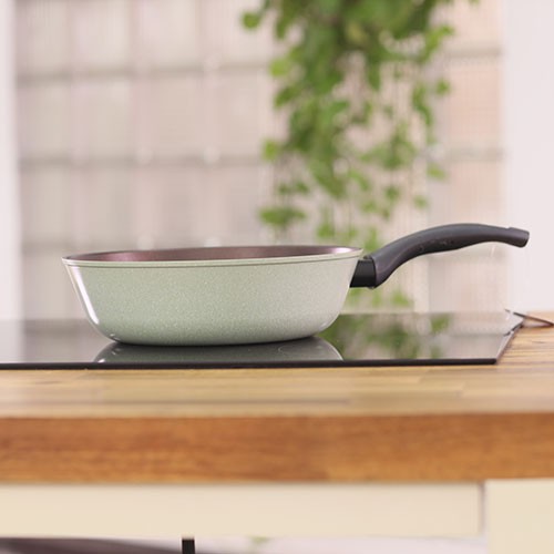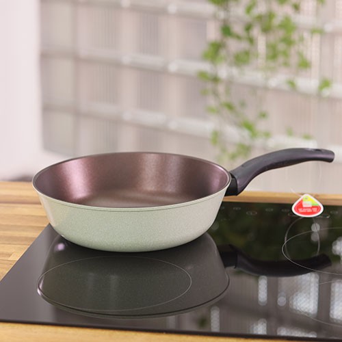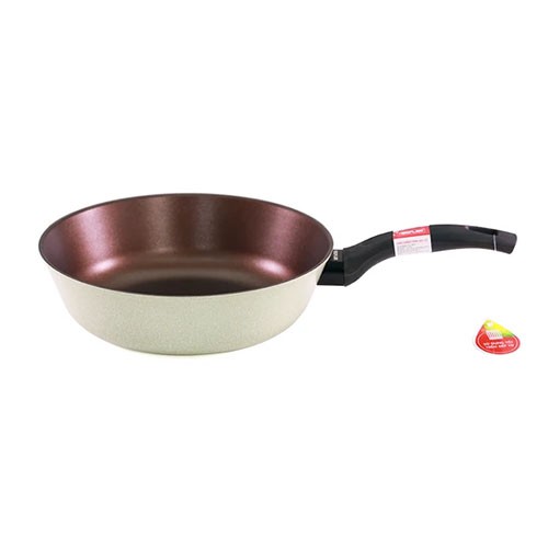 Thân chảo bằng nhôm tinh khiết với đáy dày 3.3mm nên dẫn và giữ nhiệt tốt, toả nhiệt đều. Lòng chảo rộng tối đa và được phủ lớp chống dính silkware của hãng Daikin giúp tăng cường khả năng chống dính và chống trầy xước của chảo.