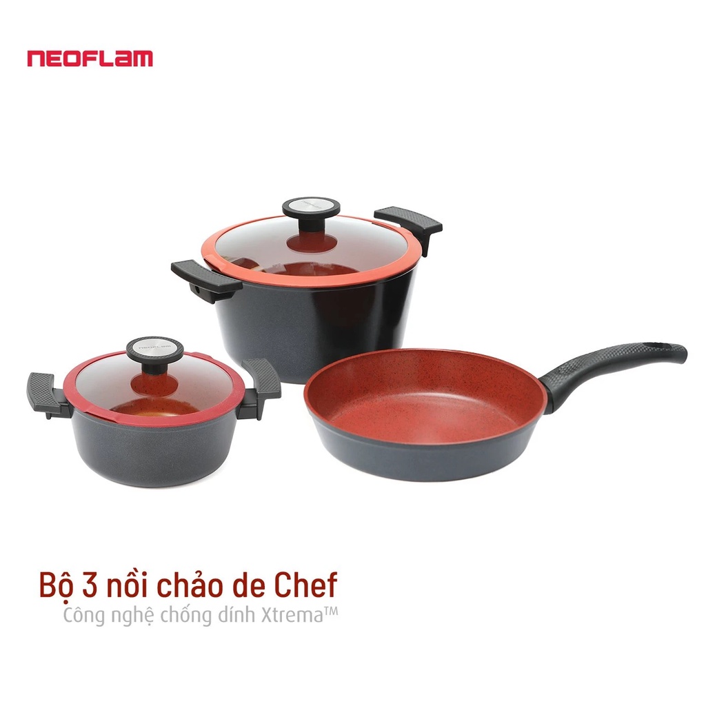 Nhà cửa & Đời sống > Dụng cụ nhà bếp > Chảo || [Hàng chính hãng] Bộ 3 nồi chảo Neoflam-deChef (2 phương án lựa chọn)Còn hàng
