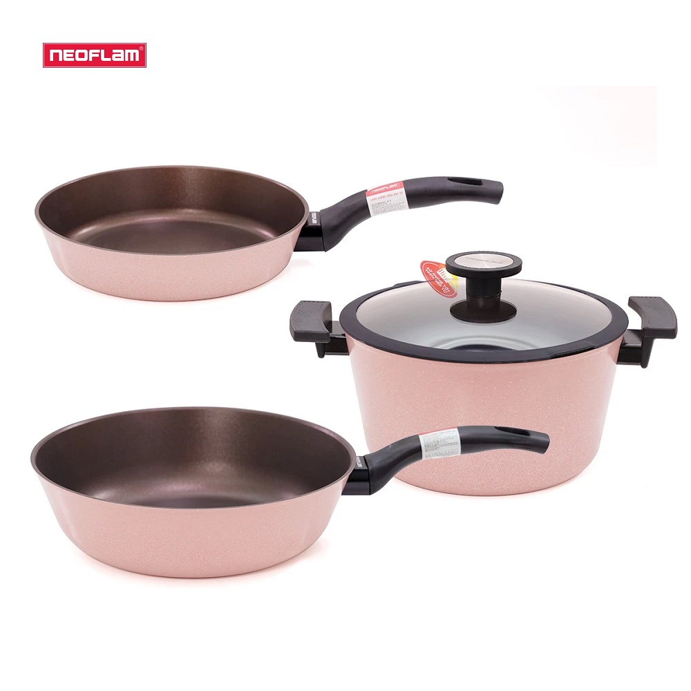[Hàng chính hãng] Bộ 3 nồi, chảo chống dính bếp từ Neoflam Reverse,1 nồi sâu 24cm, 1 chảo sâu lòng 28cm,1 chảo cạn 24cm.