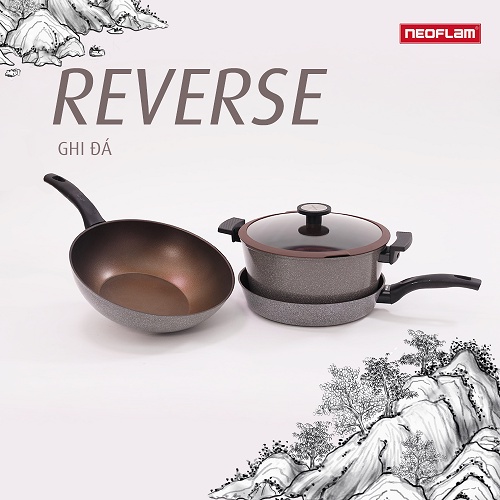 Giới thiệu [Hàng chính hãng] Bộ 3 nồi chảo chống dính bếp từ Neoflam Reverse,1 nồi sâu 28cm, 1 chảo sâu lòng 30cm,1 chảo cạn 28cm