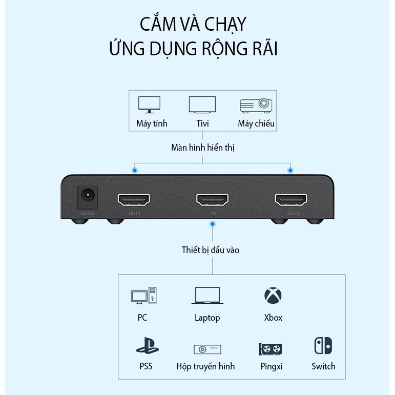 Thiết Bị Điện Gia Dụng > Tivi & Phụ kiện > Khác || [HÀNG CHÍNH HÃNG] BỘ CHIA HDMI 1 RA 2 CỔNG UNITEK V130A HỖ TRỢ 4K CAO CẤPCòn hàng