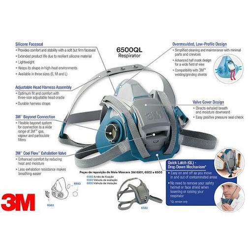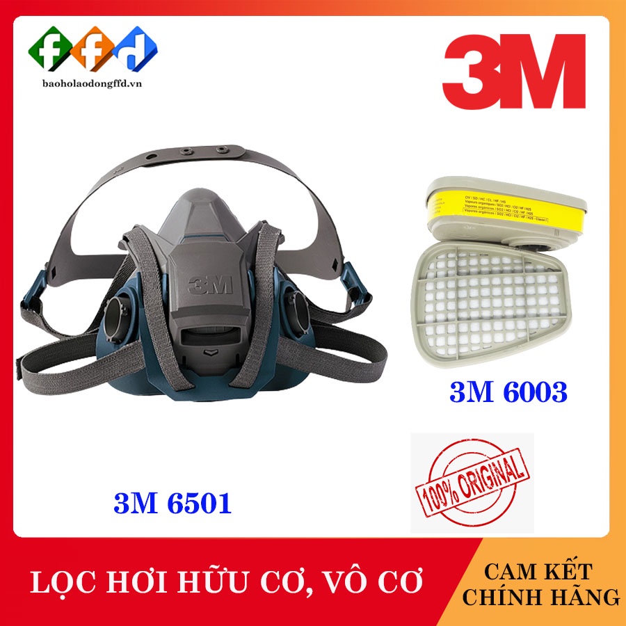 [Hàng chính hãng]Bộ mặt nạ 3M 6501QL (2 phin lọc 6003),Mặt nạ chống bụi độc,dùng phun xịt hóa chất,lọc hơi hữu cơ,vô cơ