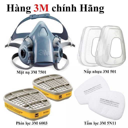 Giới thiệu [Hàng chính hãng] Bộ mặt nạ 3M 7501/7502(2 phin lọc 6003), chống bụi độc,dùng phun xịt hóa chất,lọc hơi hữu cơ và vô cơ