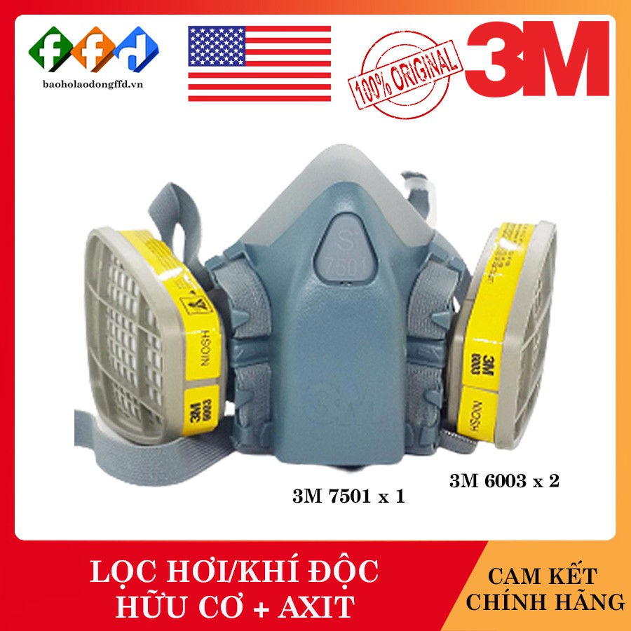[Hàng chính hãng] Bộ mặt nạ 3M 7501/7502(2 phin lọc 6003), chống bụi độc,dùng phun xịt hóa chất,lọc hơi hữu cơ và vô cơ