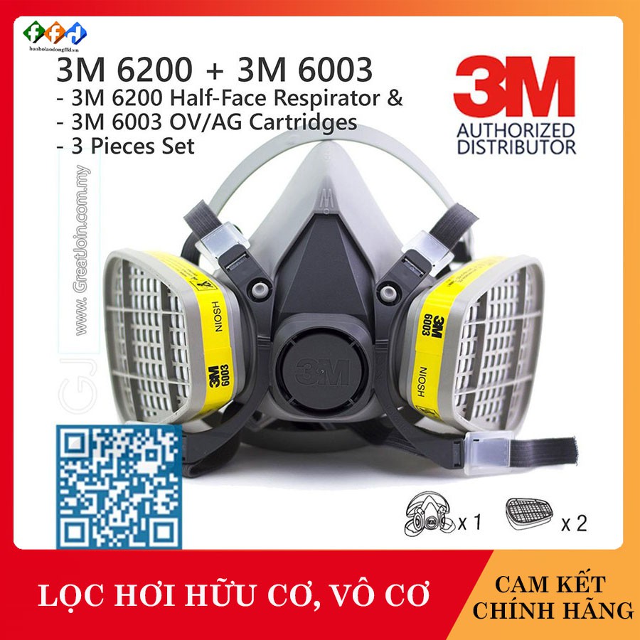 BỘ MẶT NẠ PHÒNG ĐỘC 3M 6200 (2 PHIN LỌC 3M 6003) - CHÍNH HÃNG 3M – CÓ CO, CQ, TEM CHỐNG HÀNG GIẢBộ mặt nạ bao gồm mặt nạ và các phụ kiện đi kèm. Nếu khách hàng có nhu cầu chỉ mua phụ kiện phin lọc, tấm lọc, nắp giữ đi kèm có thể mua riêng.