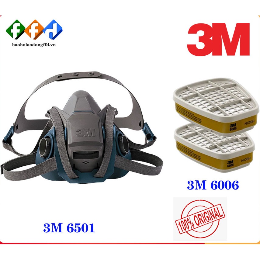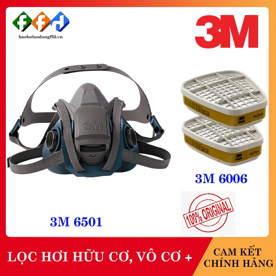 [Hàng chính hãng] Bộ mặt nạ phòng độc 3M 6501QL(2 phin lọc 6006),Lọc hơi vô cơ,hữu cơ,khí Amoniac,Metylamin,Formaldehype